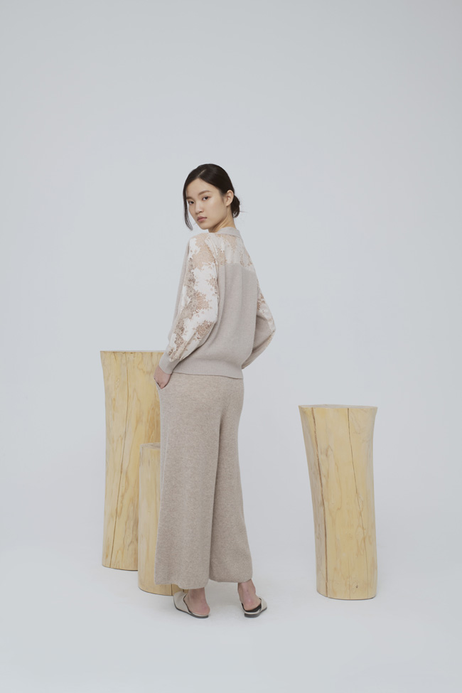 Sandra:我們的羊絨品牌設計亮點:時尚、簡約、舒適自在,往往會將羊絨和蕾絲及真絲相拼來微妙設計。這季的設計靈感是:新經典。如何回歸少而精,打造更少但更好的衣櫥,適合當代女性們多場景穿搭。另外,你以為羊絨只是秋冬的寵兒,那就大錯特錯了。羊絨的透氣性、吸濕性非常強。不通的織法以及面料搭配,可以創造出羊絨不通的質感。BYARN在羊絨的基礎上,加上了天然纖維和真絲,既在舒適程度上保證了品質,又平衡了實穿與設計感、經典與創新度之間的微妙界限。